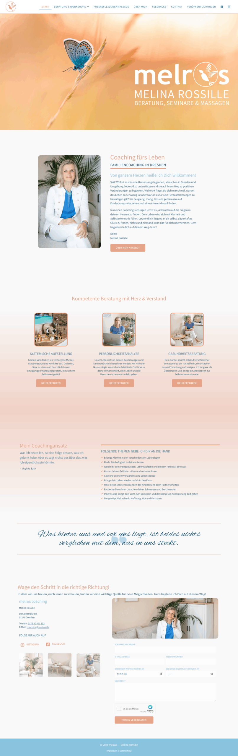 Auf Wunsch begleite ich Dich dabei vollumfänglich – von der Gestaltung und dem Aufbau Deiner Marke über die Auswahl des passenden Hostings, bis hin zur Bildauswahl und dem Formulieren Deiner Texte.